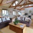 Accomodation: Large open-plan living/dining room with log burner, oak floor, French doors, beamed ceiling and kitchen area. King sized double bedroom. Twin bedroom. Bathroom with over-bath shower and toilet.